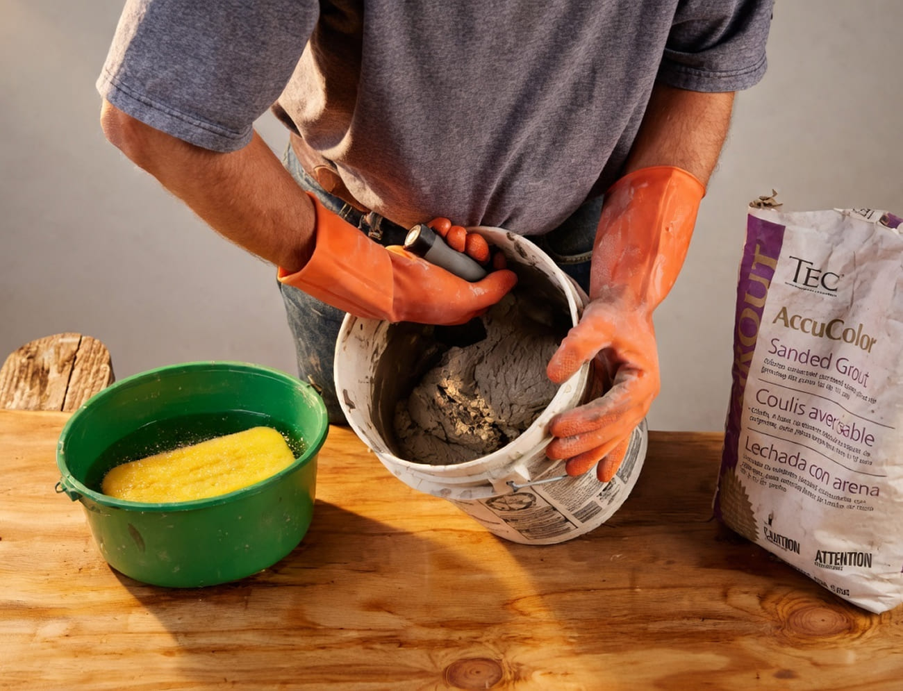 Строго следуйте инструкции на упаковке. Засыпайте затирку в воду (не наоборот), перемешивайте миксером или вручную до консистенции густой сметаны. Дайте раствору постоять 5–10 минут. Готовьте небольшими порциями: смесь быстро схватывается. Важно: слишком жидкий раствор приведёт к трещинам, слишком густой — не заполнит швы.