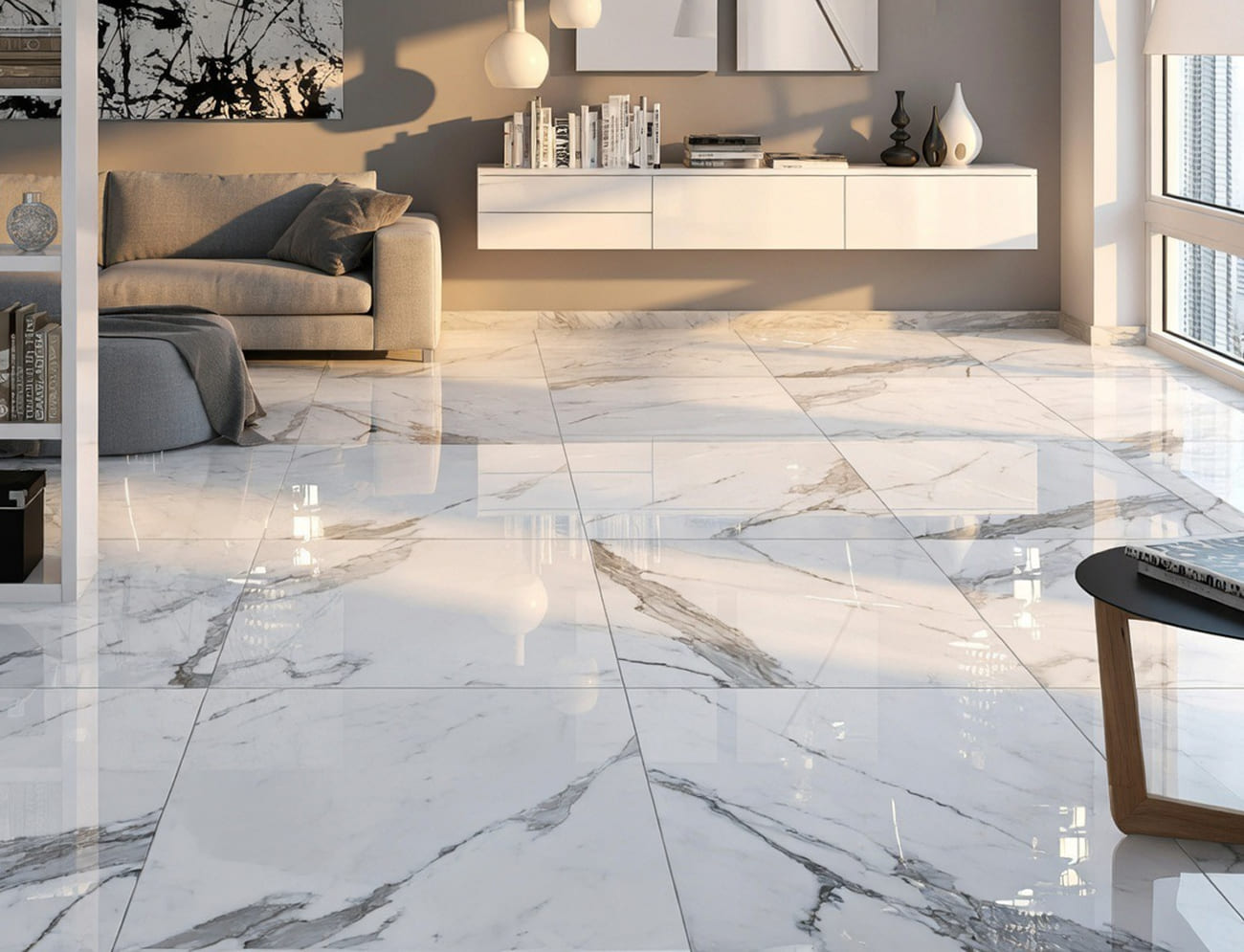 - Для сухих зон (гостиная, коридор): цементная затирка. Плюсы — бюджет, простота, скорость.